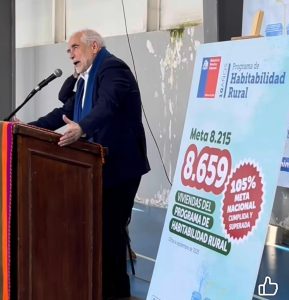 “Con la visita a esta región, estamos cumpliendo 10 años del programa nacional de Habitabilidad Rural del Ministerio de Vivienda, con la puesta en marcha de dos proyectos de viviendas para machis, cuestión que habíamos buscando hace mucho tiempo y hoy comenzamos a concretar, además de anunciar que hemos sobrepasado en un 105% la meta del plan de emergencia habitacional a nivel nacional”, comentó el ministro de Vivienda, Carlos Montes.