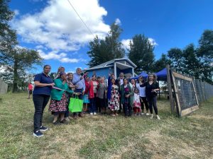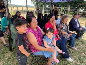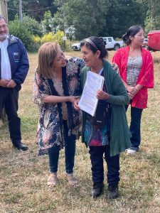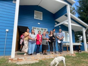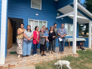 La nueva casa azul de Anita Huenchunao fue el telón de fondo para la ceremonia de entrega de las escrituras y llaves de viviendas rurales del comité Macrosectores de Padre Las Casas.
