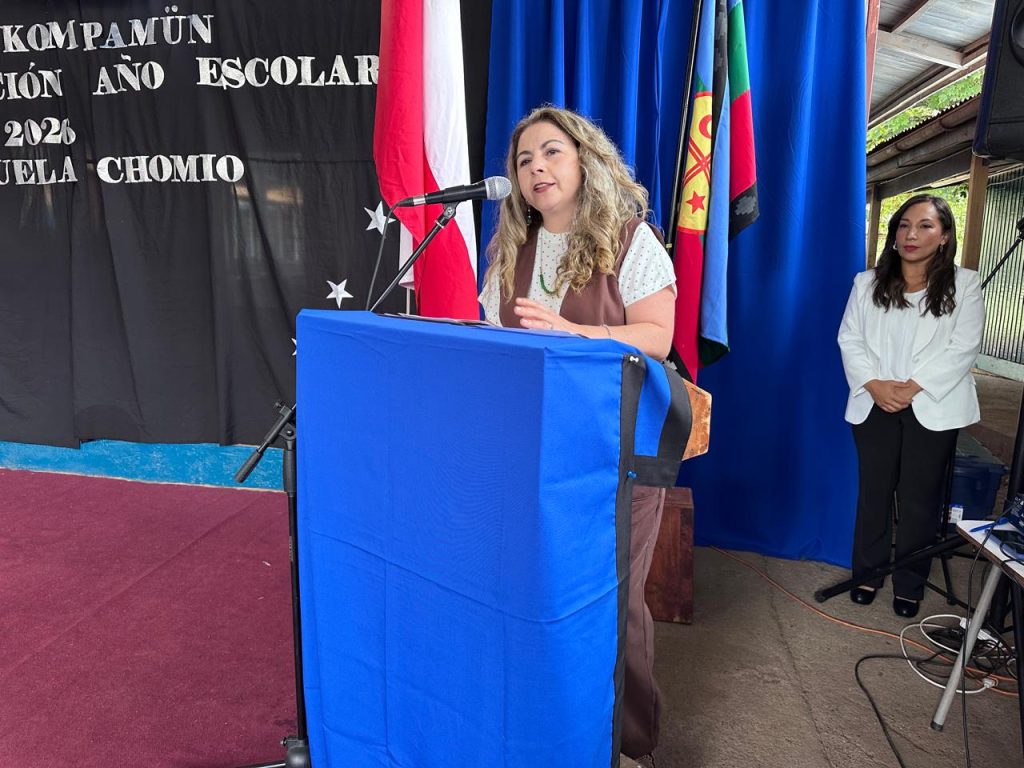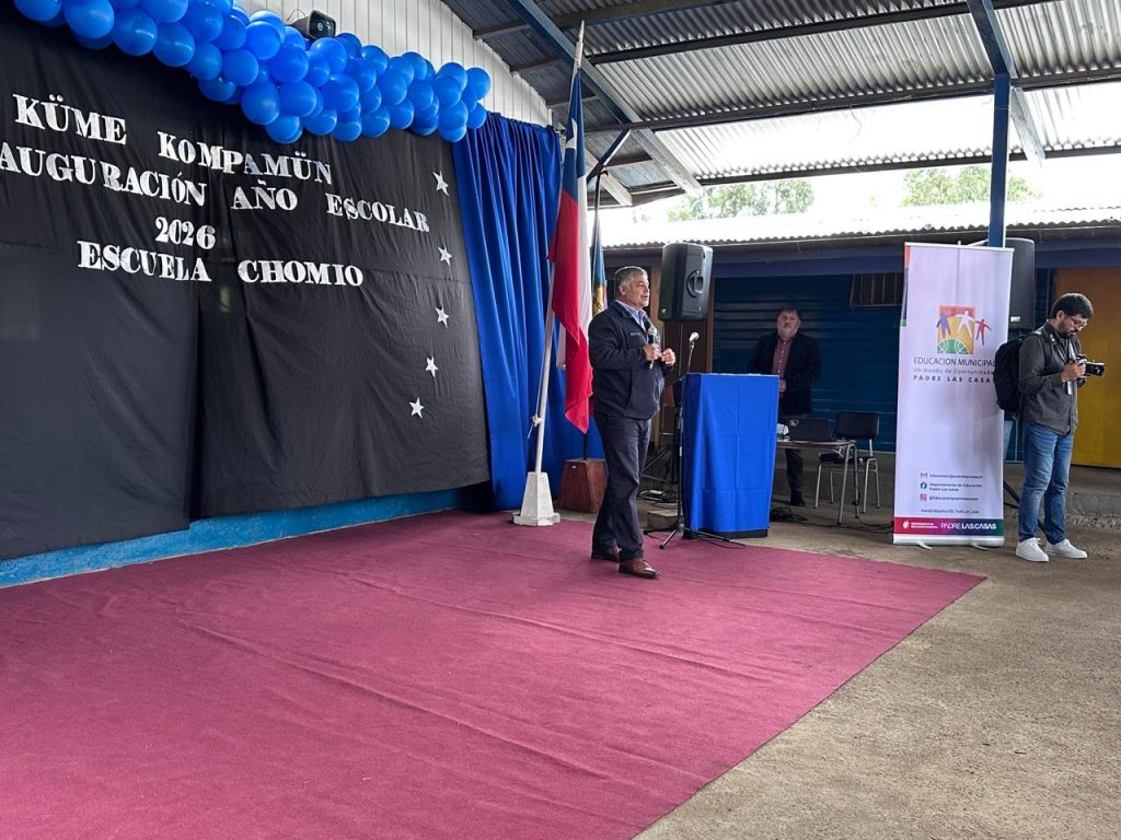 Relevando la aprobación del proyecto de reposición total para la Escuela Municipal Chomío, la jefa de la División ver Desarrollo Social y Humano de la gobernación de La Araucanía, Erika López y el alcalde de Padre Las Casas, Mario González inauguraron el año escolar 2026 en la comuna de Padre Las Casas.